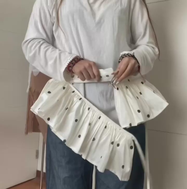 This mini skirt is made from repurposed deadstock taffeta, giving new life to unused materials! Polka dots are hand-painted, so each item is one of a kind! Slight variations and imperfections in the print are normal and add to the charm of a handmade piece.